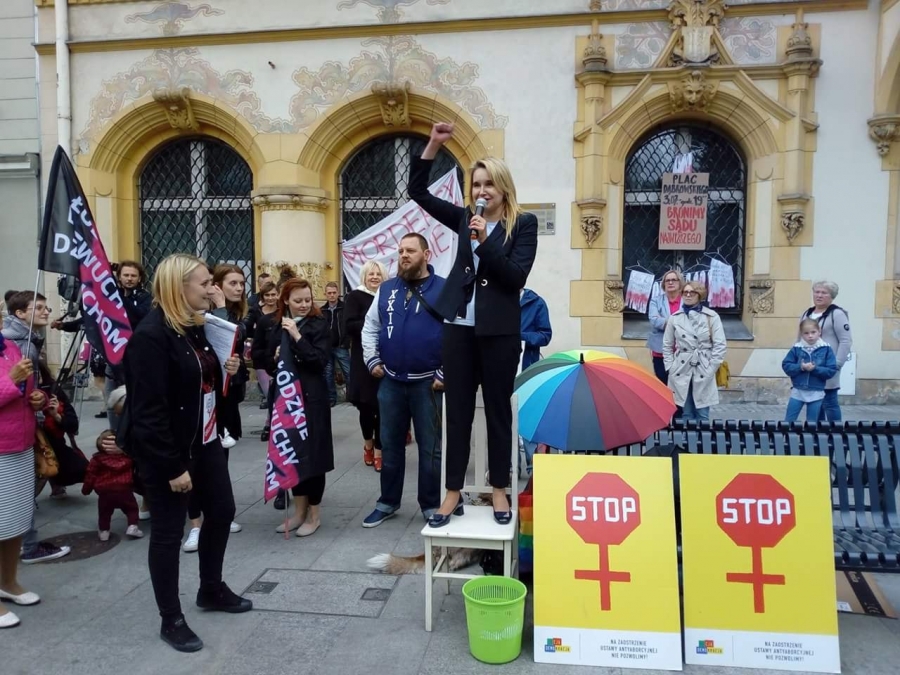 W odpowiedzi na wprowadzenie projektu katolickich fanatyków pod obrady sejmowej komisji w całym kraju zorganizowane zostały demonstracje w obronie praw kobiet. Nie inaczej było w Łodzi, gdzie manifestacja odbyła się na ul. Piotrkowskiej, przed biurem Prawa i Sprawiedliwości/.